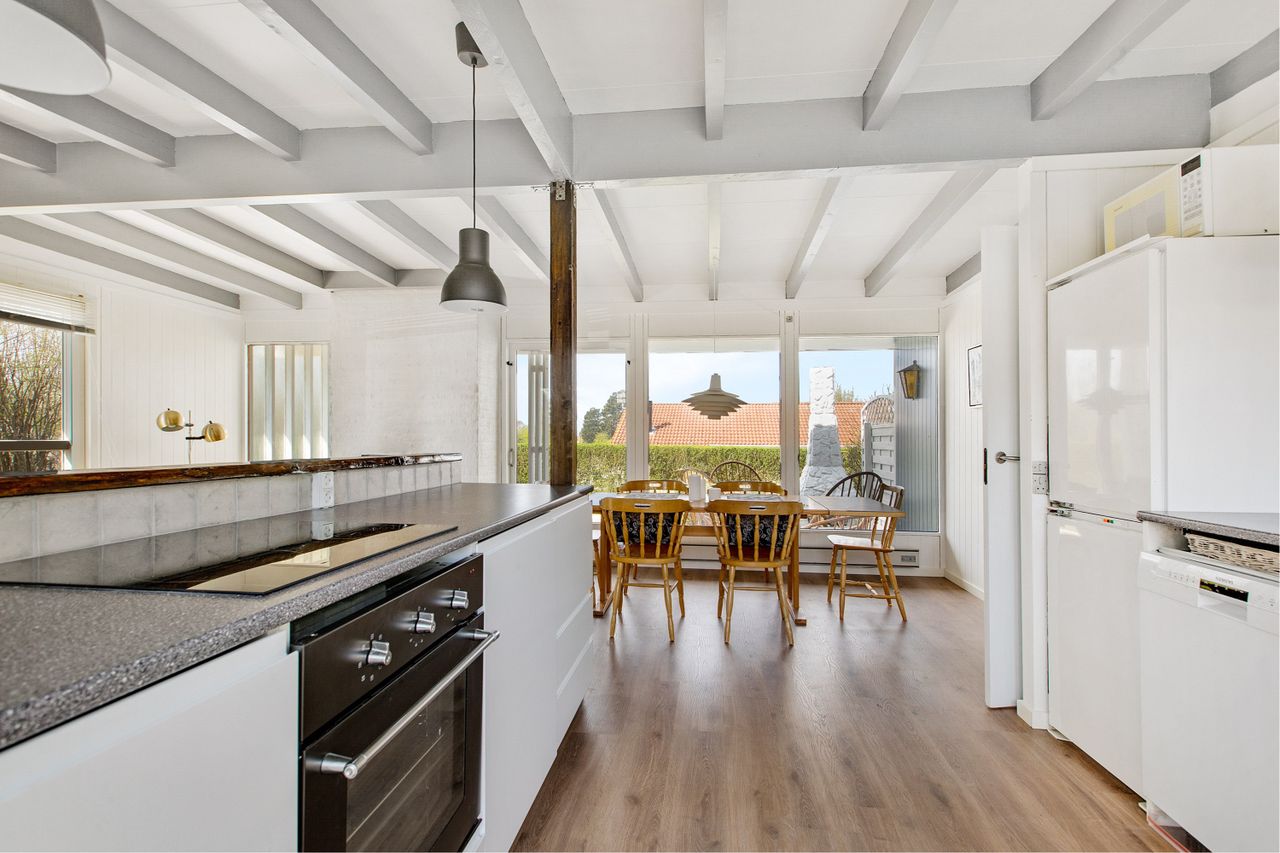 Sommerhuset har netop gennemgået en kraftig renovering med bl.a. nyt køkken og badeværelse.