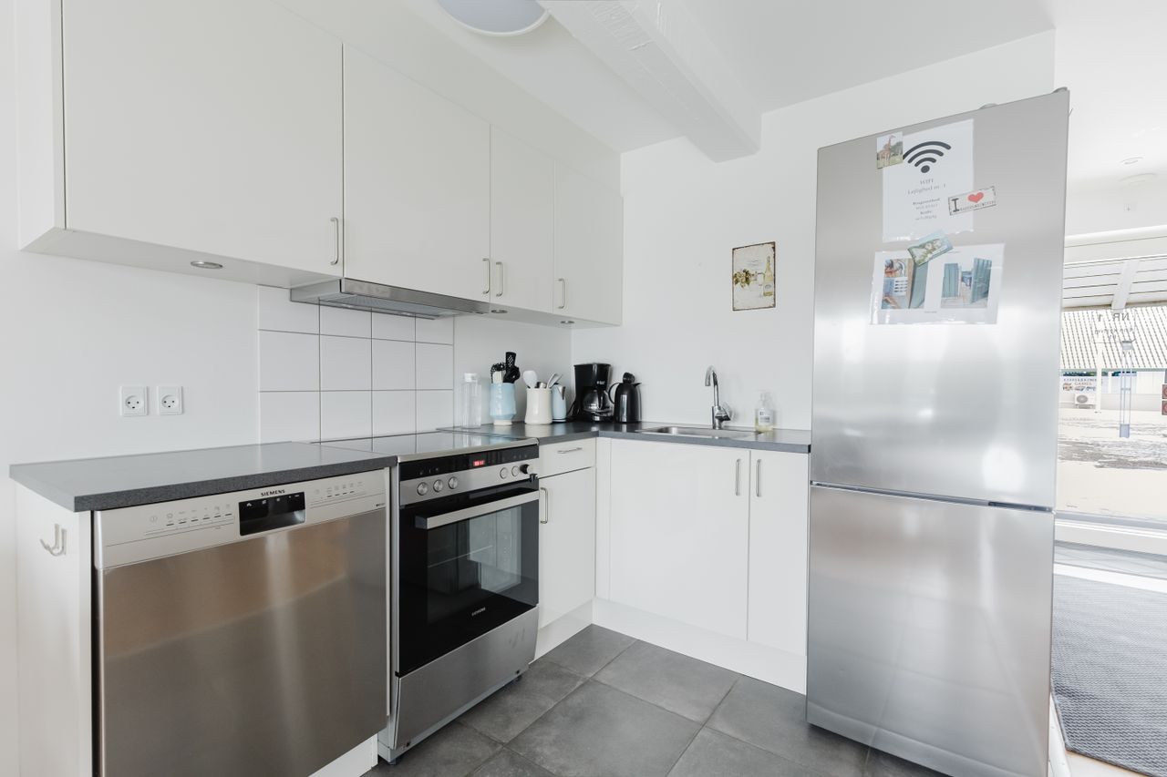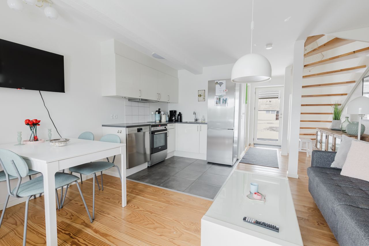 I top er også materialevalget da lejlighederne i 2019 blev indrettet og ombygget. Rationel vinduer og døre, vedligeholdelsesfrit komposit beklædning, massive Dinesen Douglas gulve, HTH Højglans køkken, og altan i galvaniseret smedejern og zink.