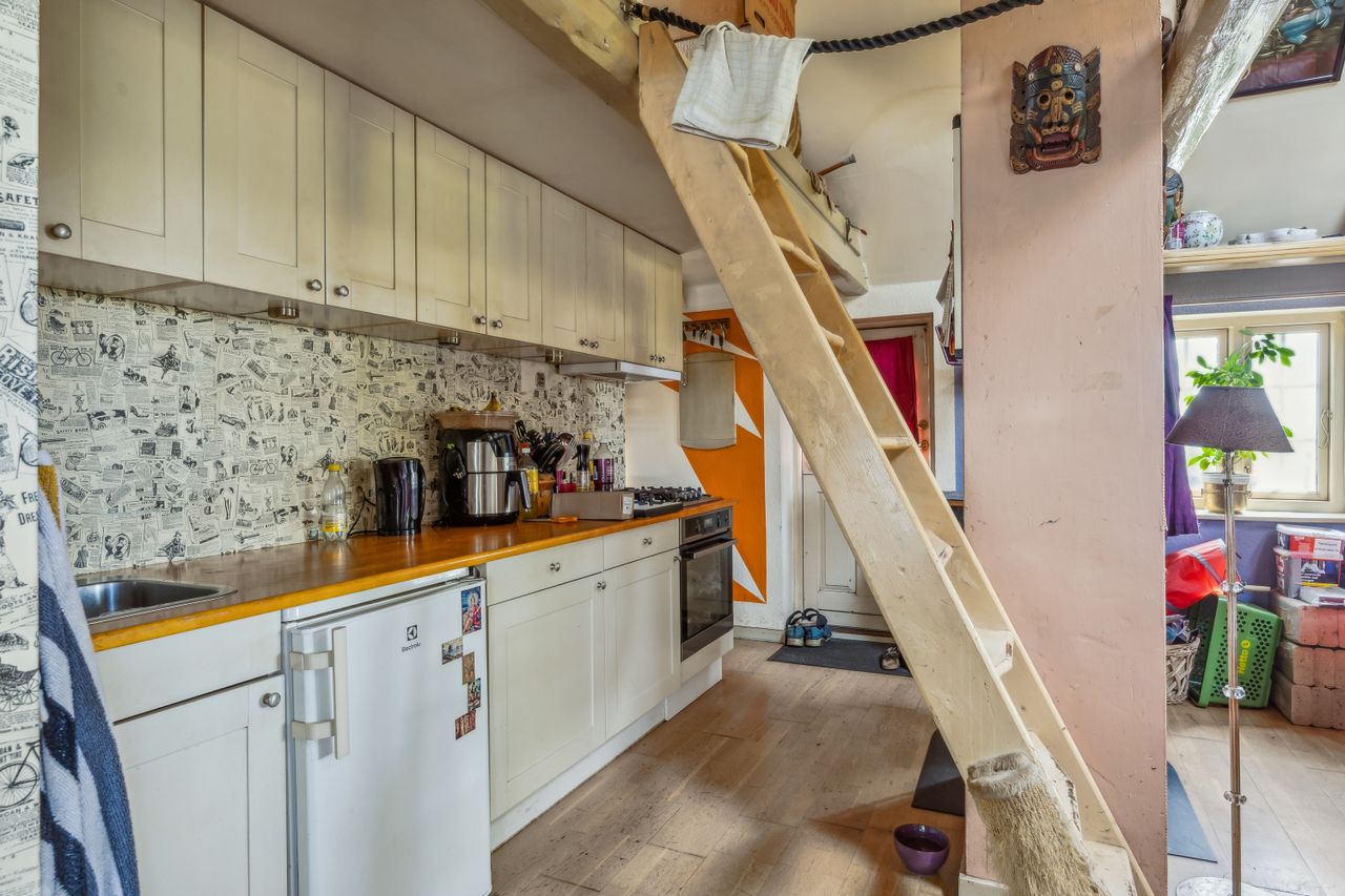 Opholdsstue i åben forbindelse til køkken med udgang til udhus, trappestige til hems, soveværelse med adgang til badeværelse.