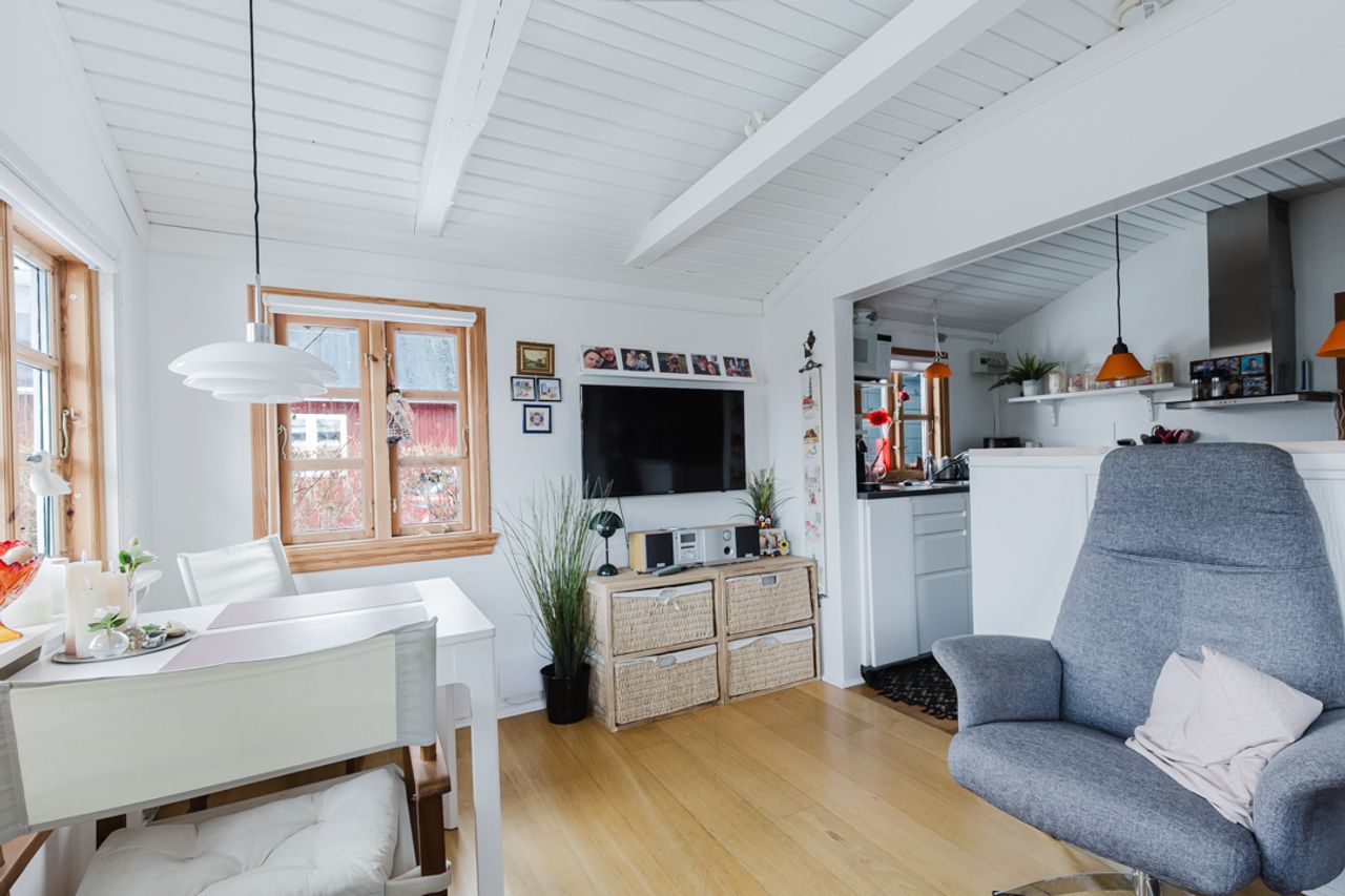 Sommerhuset er indrettet med åbent køkken og stue i sammenhæng, hvilket skaber et lyst og indbydende opholdsrum. Boligen rummer desuden et badeværelse, et disponibelt rum samt et tilbygget soveværelse, som giver gode overnatningsmuligheder for både familie og gæster.