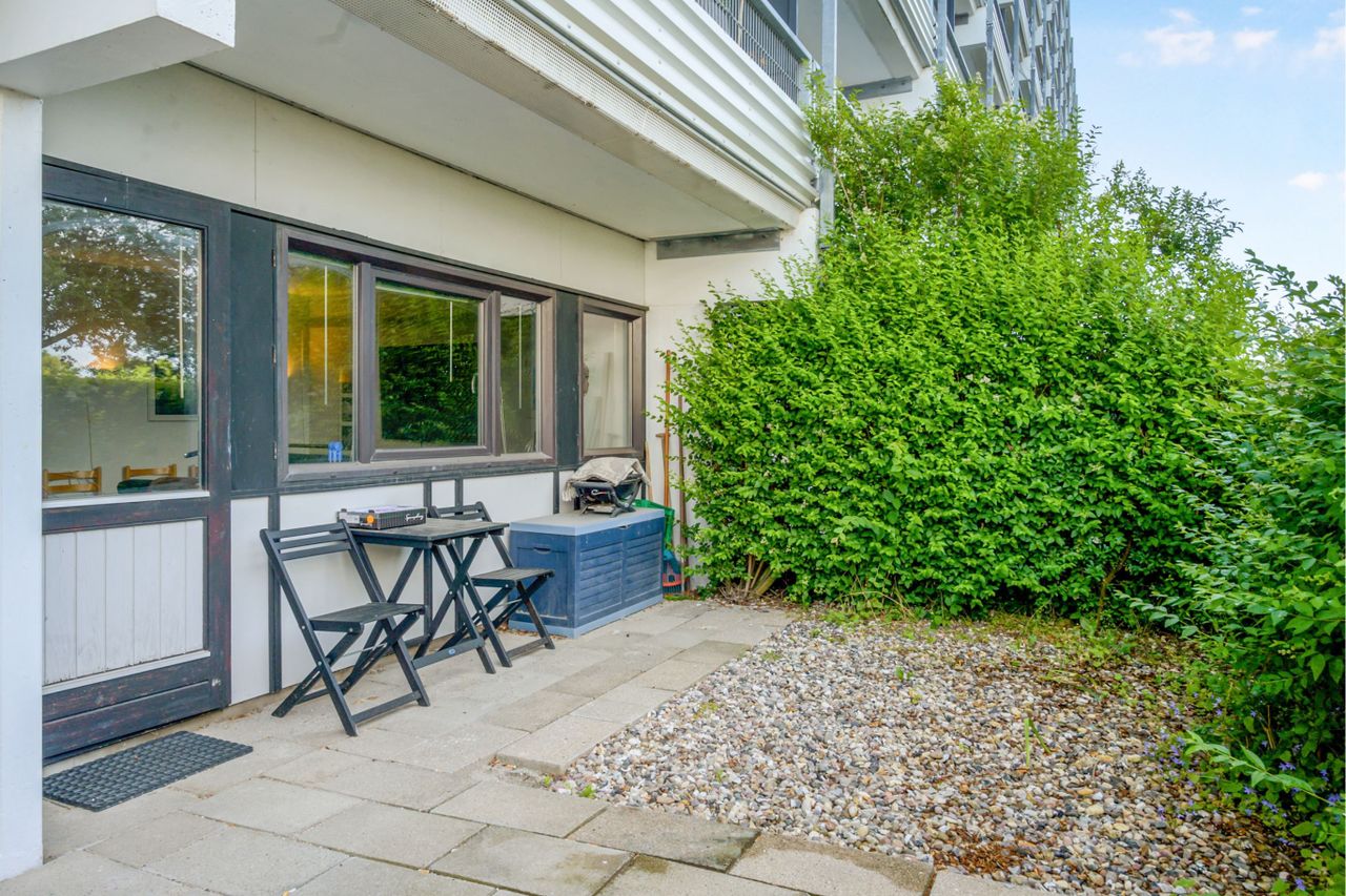 På den dejlige vestvendte terrasse kan solen nydes det meste af dagen.