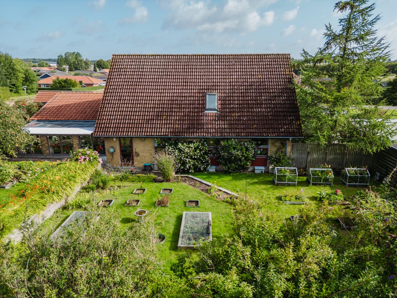 Haven er anlagt i flere sektioner og nøje beplantet når der hele året er noget kønt at kigge på.