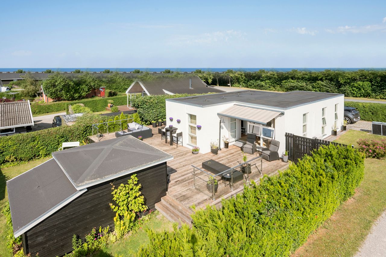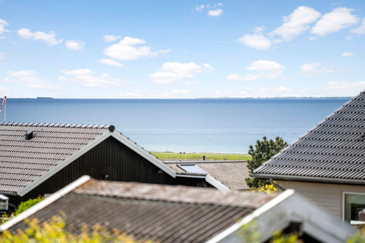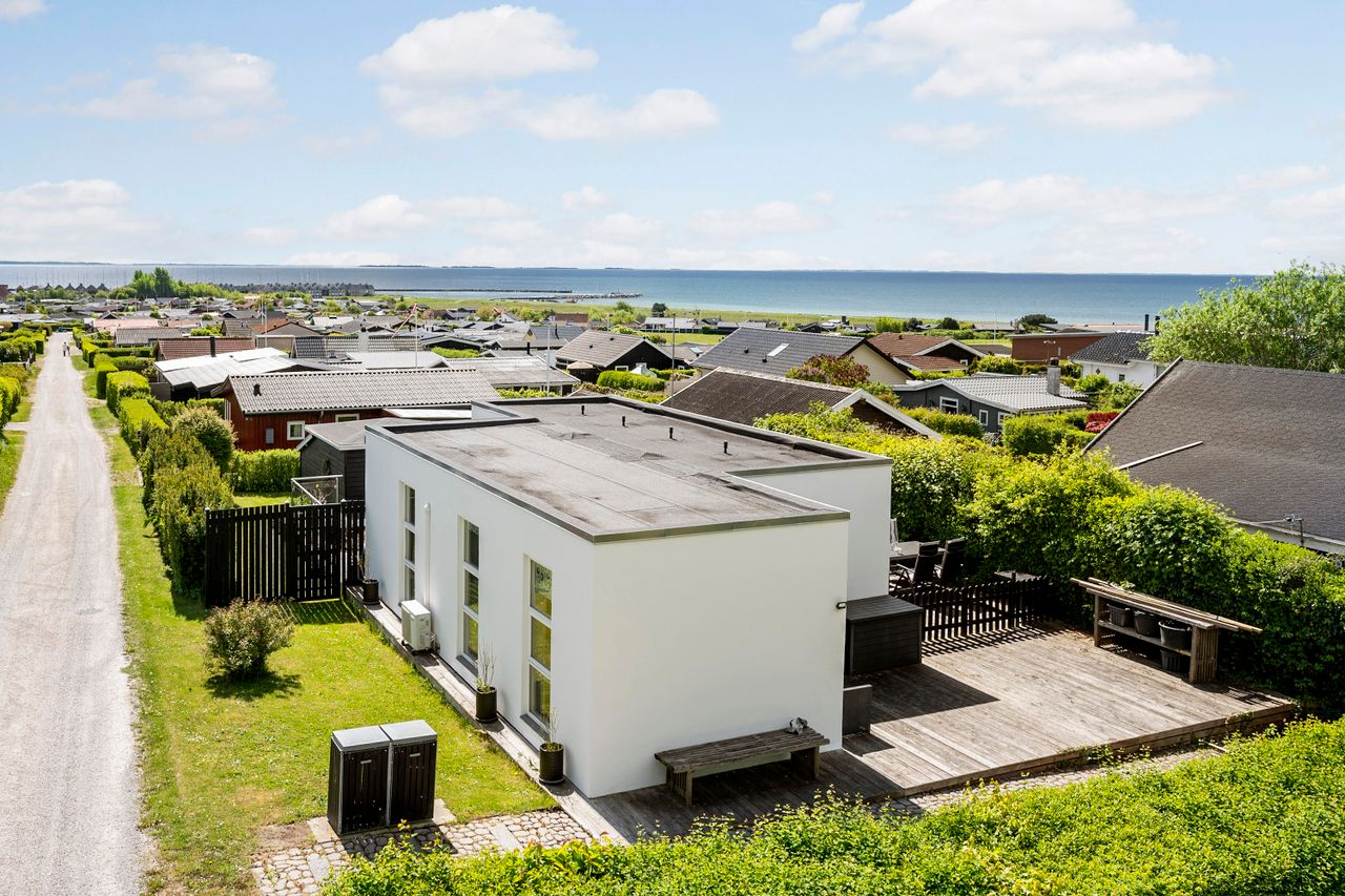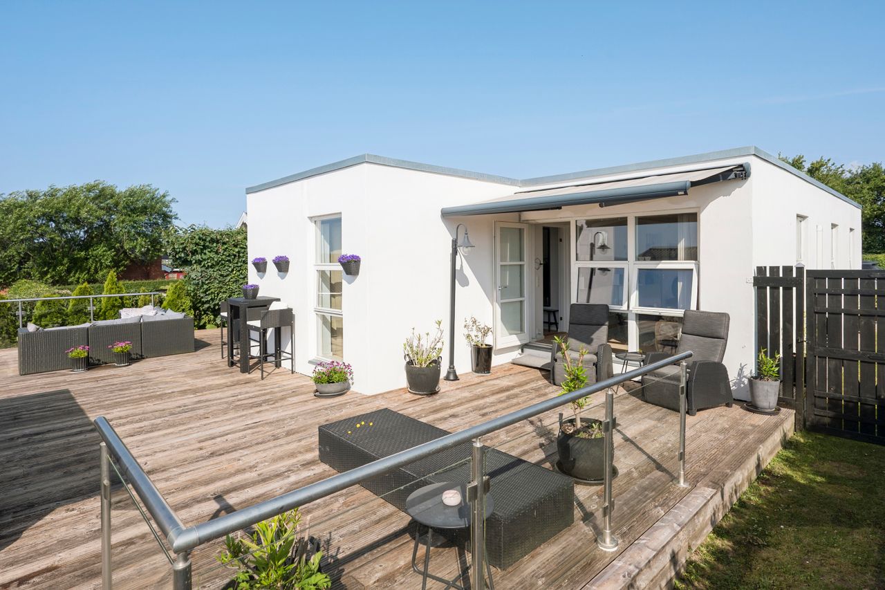 Omkranset af ca. 100 m2 træterrasse hvorfra der er kig til Smålandsfarvandet.