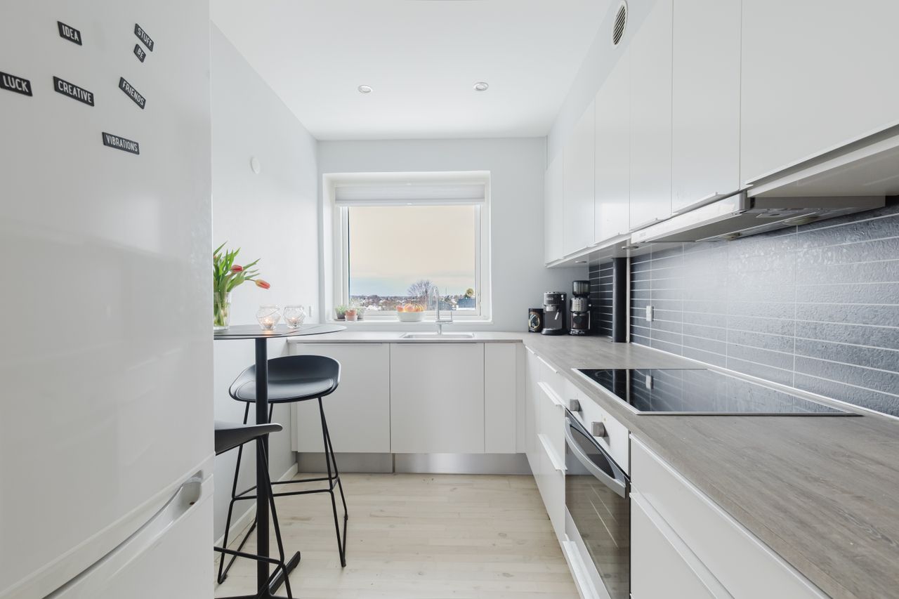 Lejligheden har hvide lofter og vægge samt pæne parketgulve i alle opholdsrum.