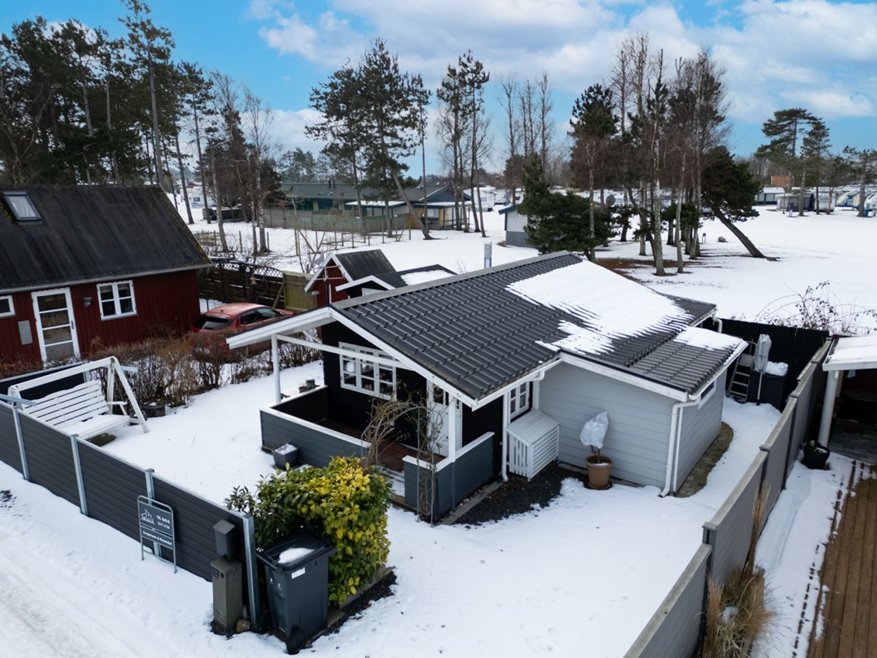Sommerhuset er indrettet med åbent køkken og stue i sammenhæng, hvilket skaber et lyst og indbydende opholdsrum. Boligen rummer desuden et badeværelse, et disponibelt rum samt et tilbygget soveværelse, som giver gode overnatningsmuligheder for både familie og gæster.