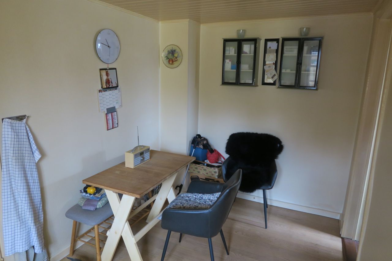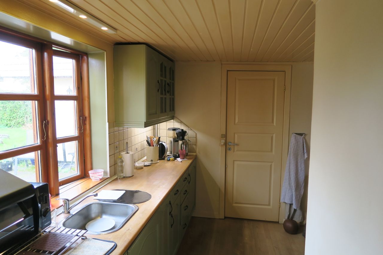 Boligen indh.: Entré, værelse, køkken med lille spiseplads, opholdsstue med brændeovn, mellemgang med udgang til haven, bryggers/fyrrum med fjernvarmeinstallation, badeværelse med bruseniche, soveværelse.