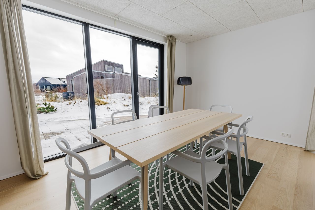 Materialevalget er lyst og tidløst med lyse gulve og hvide vægge, som understreger den rolige sommerhusstemning. De store glaspartier giver et dejligt kig til omgivelserne og masser af dagslys året rundt.